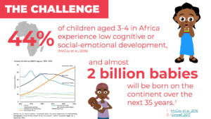 Currently, it’s estimated that over 44% of children below the age of 5 in sub-Saharan Africa have under-developed social-emotional and cognitive skills. This is tied to delinquency, unemployment, and lack of empathy in adulthood. SEL is linked to short and long-term outcomes, including improvements in academic achievement, behaviour, and health and decreases in aggression and substance abuse. The situation is worse for children living in severe poverty, conflict areas and refugee camps as they experience toxic stress, which affects children’s brain development in the short and long term. However, when provided with support such as SEL interventions, the harmful impacts of exposure to violence, abuse and neglect can be stopped and even reversed.